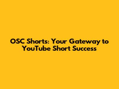 OSC Shorts: Your Gateway To YouTube Short Success