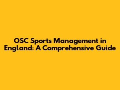 OSC Sports Management In England: A Comprehensive Guide