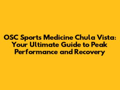 OSC Sports Medicine In Chula Vista: Your Go-To Guide