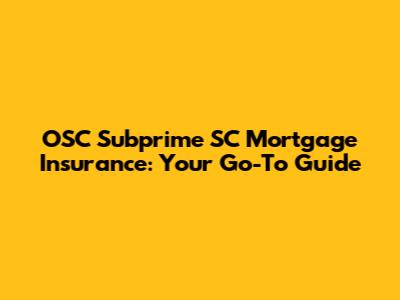 OSC Subprime SC Mortgage Insurance: Your Go-To Guide