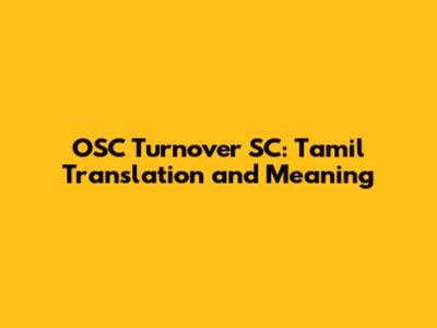 OSC Turnover SC: Tamil Translation And Meaning