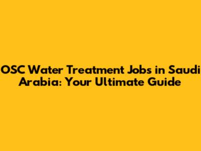 OSC Water Treatment Jobs In Saudi Arabia: Your Guide