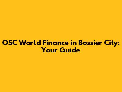 OSC World Finance In Bossier City: Your Guide