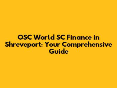 OSC World SC Finance In Shreveport: Your Comprehensive Guide