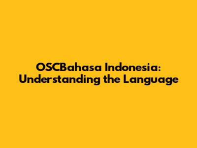 OSCBahasa Indonesia: Understanding The Language