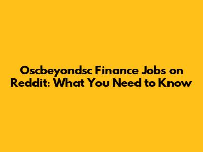 Oscbeyondsc Finance Jobs On Reddit: What You Need To Know