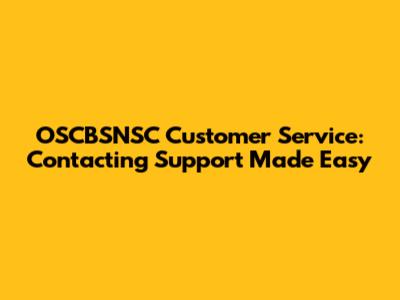OSCBSNSC Customer Service: Contacting Support Made Easy