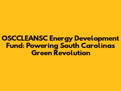 OSCCLEANSC Energy Development Fund: Investing In South Carolina's Future