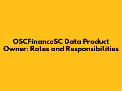 OSCFinanceSC Data Product Owner: Roles And Responsibilities