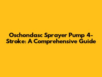 Oschondasc Sprayer Pump 4-Stroke: A Comprehensive Guide