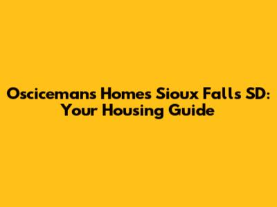Oscicemans Homes Sioux Falls SD: Your Housing Guide