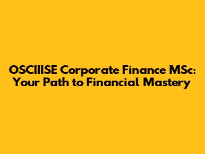OSCIIISE Corporate Finance MSc: Your Path To Financial Mastery