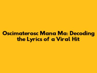 Oscimaterosc Mana Ma: Decoding The Lyrics Of A Viral Hit