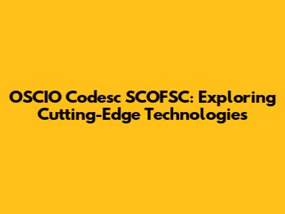 OSCIO Codesc SCOFSC: Exploring Cutting-Edge Technologies