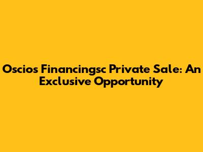 Oscios Financingsc Private Sale: An Exclusive Opportunity