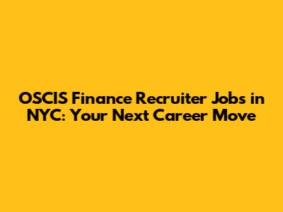 OSCIS Finance Recruiter Jobs In NYC: Your Next Career Move