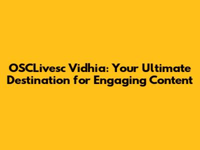 OSCLivesc Vidhia: Your Go-To Channel For Awesome Content