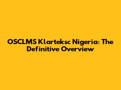 OSCLMS Klarteksc Nigeria: The Definitive Overview