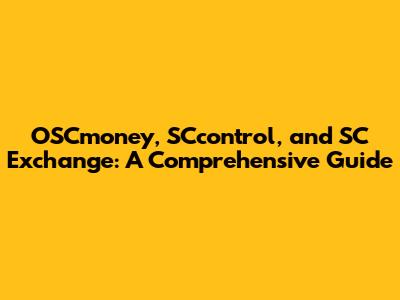 OSCmoney, SCcontrol, And SC Exchange: A Comprehensive Guide