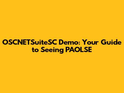 OSCNETSuiteSC Demo: Your Guide To Seeing PAOLSE