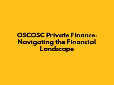 OSCOSC Private Finance: Strategies & Insights