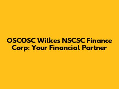 OSCOSC Wilkes NSCSC Finance Corp: Your Financial Partner