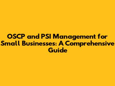 OSCP And PSI Management For Small Businesses