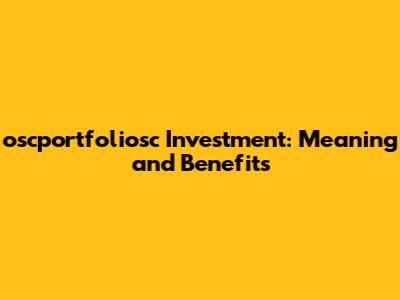 Oscportfoliosc Investment: Meaning And Benefits