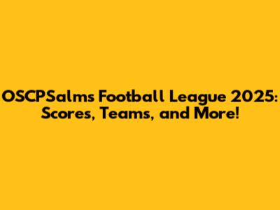 OSCPSalms Football League 2025: Scores, Teams, And More!
