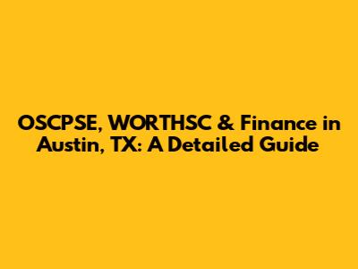 OSCPSE, WORTHSC & Finance In Austin, TX: A Detailed Guide