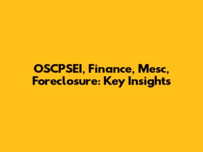 OSCPSEI, Finance, Mesc, Foreclosure: Key Insights
