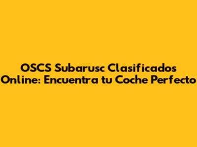 OSCS Subarusc Clasificados Online: Encuentra Tu Coche Perfecto