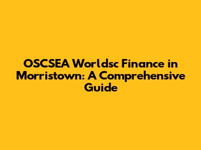 OSCSEA Worldsc Finance In Morristown: A Comprehensive Guide