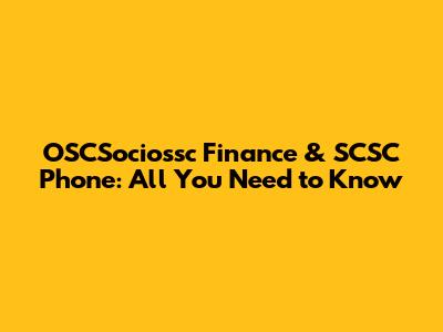 OSCSociossc Finance & SCSC Phone: All You Need To Know