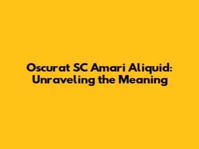 Oscurat SC Amari Aliquid: Unraveling The Meaning