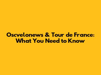 Oscvelonews & Tour De France: What You Need To Know