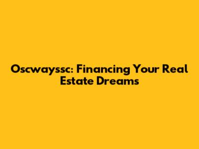 Oscwayssc: Financing Your Real Estate Dreams