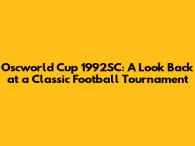 Oscworld Cup 1992SC: A Look Back At A Classic Football Tournament