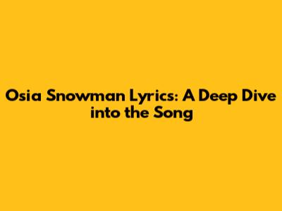 Osia Snowman Lyrics: A Deep Dive Into The Song