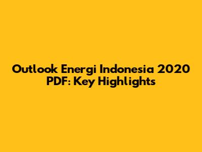 Outlook Energi Indonesia 2020 PDF: Key Highlights