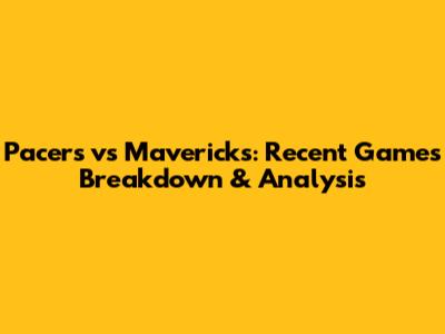 Pacers Vs Mavericks: Recent Games Breakdown & Analysis