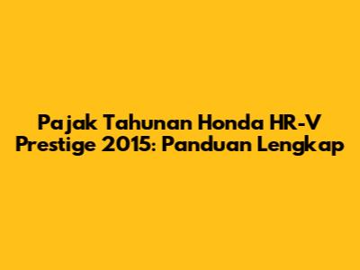 Pajak Tahunan Honda HR-V Prestige 2015: Panduan Lengkap