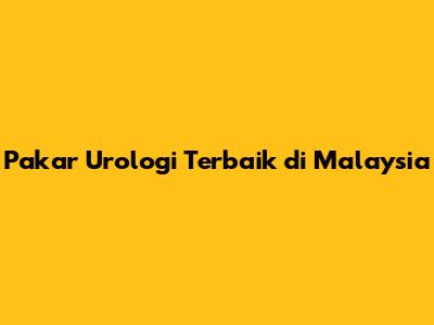 Pakar Urologi Terbaik Di Malaysia
