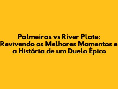 Palmeiras Vs River: Momentos Épicos E Análise Completa