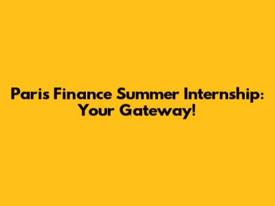 Paris Finance Summer Internship: Your Gateway!