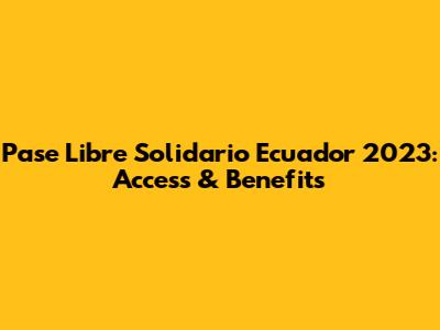 Pase Libre Solidario Ecuador 2023: Access & Benefits