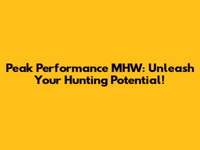 Peak Performance MHW: Maximize Your Hunt!