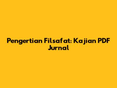 Pengertian Filsafat: Kajian PDF Jurnal