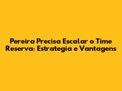 Pereira Precisa Escalar O Time Reserva: Estrategia E Vantagens
