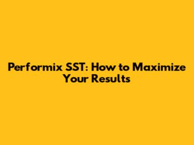 Performix SST: How To Maximize Your Results